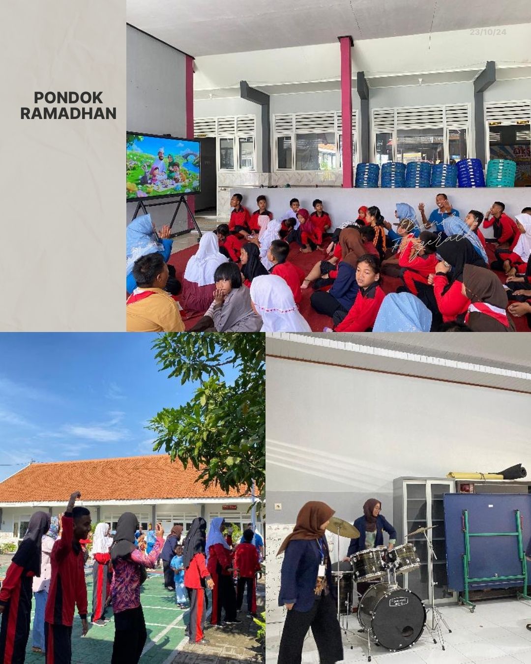 Pagi dimulai dengan kegiatan Harmoni Shaf yang dipimpin langsung oleh mahasiswa pembimbing. Sholat Dhuha dilaksanakan secara berjamaah dengan tertib dan penuh kekhusyukan. Setelah ibadah, mahasiswa mengajak siswa bernyanyi bersama dalam kegiatan Nada Sholawat. Lagu-lagu sholawat dinyanyikan dengan riang gembira untuk mencairkan suasana hati. Kegiatan Senandung Murotal Hati kemudian dilanjutkan dengan mendengarkan bacaan Al-Qur'an. Siswa mendengarkan dengan antusias sambil mencoba menirukan bacaan yang didengar. Suasana spiritual ini menjadi pondasi kuat bagi pembentukan karakter religius peserta didik.